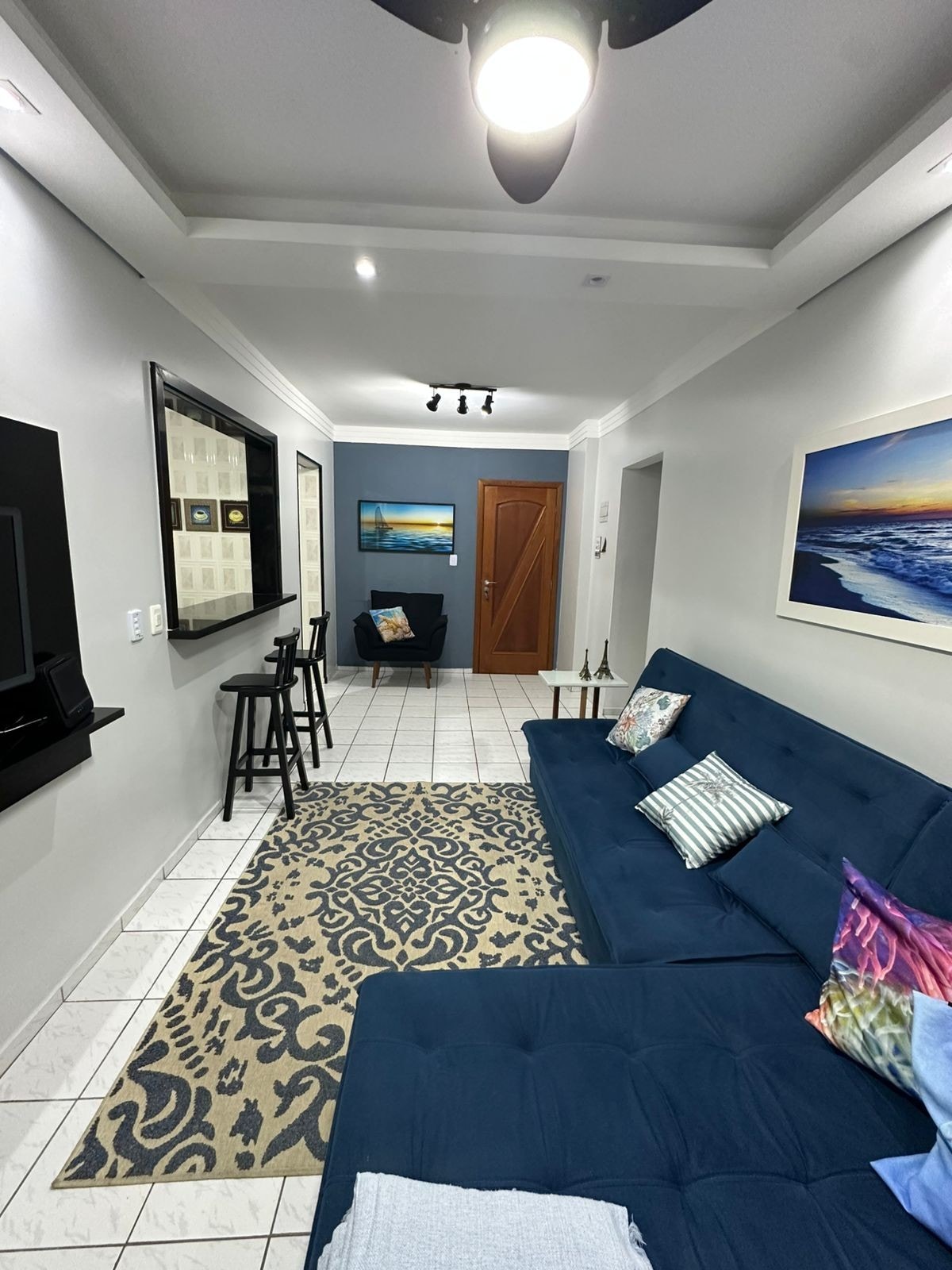 巴爾內阿里烏馬拉卡納(📍 Balneário Maracanã)–大普拉亞(Praia Grande)/聖保羅 入住時間:下午2時至晚上11時|退房時間:中午12時前 延長🌅星期日:出發至16時 包括🛏 床單/浴巾 🌅11樓,可欣賞海濱全景 設有燒烤設施的美食🔥門廊 非常適合在海浪聲中放鬆 1間宿舍,最多可供4位旅人入住 WiFi和智慧電視 設備廚房 毗鄰住宅提供🚗1個免費車位 適合🐶寵物入住:每次住宿每隻寵物收取150美元的費用 ⚠️ 它沒有防護屏風,但有玻璃簾的封閉式陽台