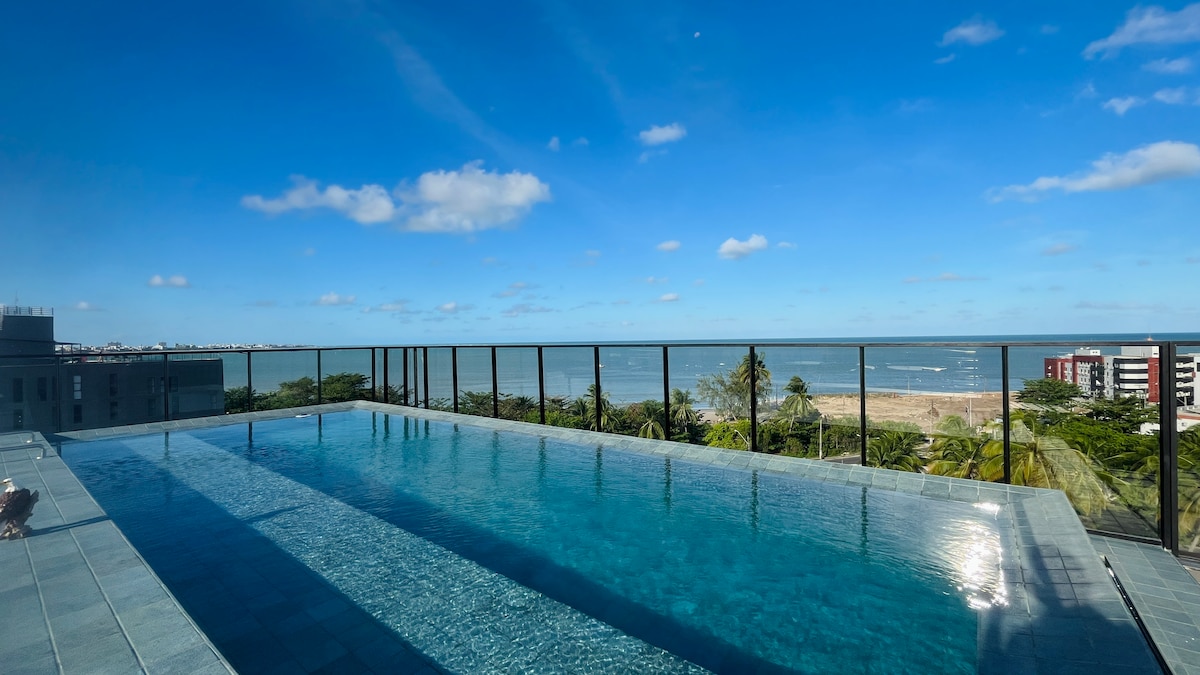 - Flat pé na areia com incrível vista para o mar do Bessa, uma das mais belas praias de João Pessoa - Acomoda até 3 pessoas + 1 criança cortesia - Cama Queen, sofá cama -Ar-condicionado, cortina blackout, roupa de cama e banho de hotelaria - Cozinha completa (geladeira, cooktop, microondas, cafeteira e filtro de água) - Wi-Fi - Smart TV 60" - Rooftop com piscina, churrasqueira e vista - Academia - Lavanderia - Recepção 24 horas - Próximo a bares e restaurantes - Estacionamento gratuito rotativo