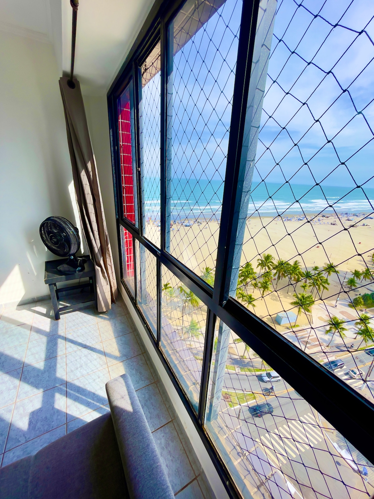 5樓,海濱,陽臺上的吊牀,海濱全景,警衛網,新電梯,前面通往海灘(白天) ,另一個在旁邊的街道上, 24小時保安,公寓外部區域有監視錄影器。冰箱/爐子/餐具/盤子, 3間臥室和客廳的風扇,嬰兒牀/浴缸,配有水箱/洗衣機/天花板衣服的洗衣空間,客廳配有沙發/電視/餐桌,請注意,我們不提供牀和浴室牀單