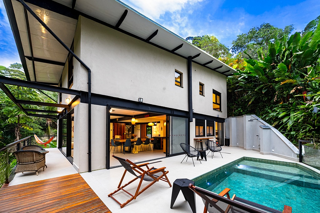 A casa fica integrada na mata, na copa das árvores, com vista para o mar, dentro do condomínio, no morro do canto direito da Praia do Félix, na parte mais bonita e preservada do Município de Ubatuba. Aqui você acorda com os sons da mata Atlântica e das ondas. São 3 suítes, redes, sofás, TV com DVD, internet rápida e churrasqueira. Essa é a casa perfeita para quem quer curtir sossego e natureza, com toda tranquilidade do mundo.
