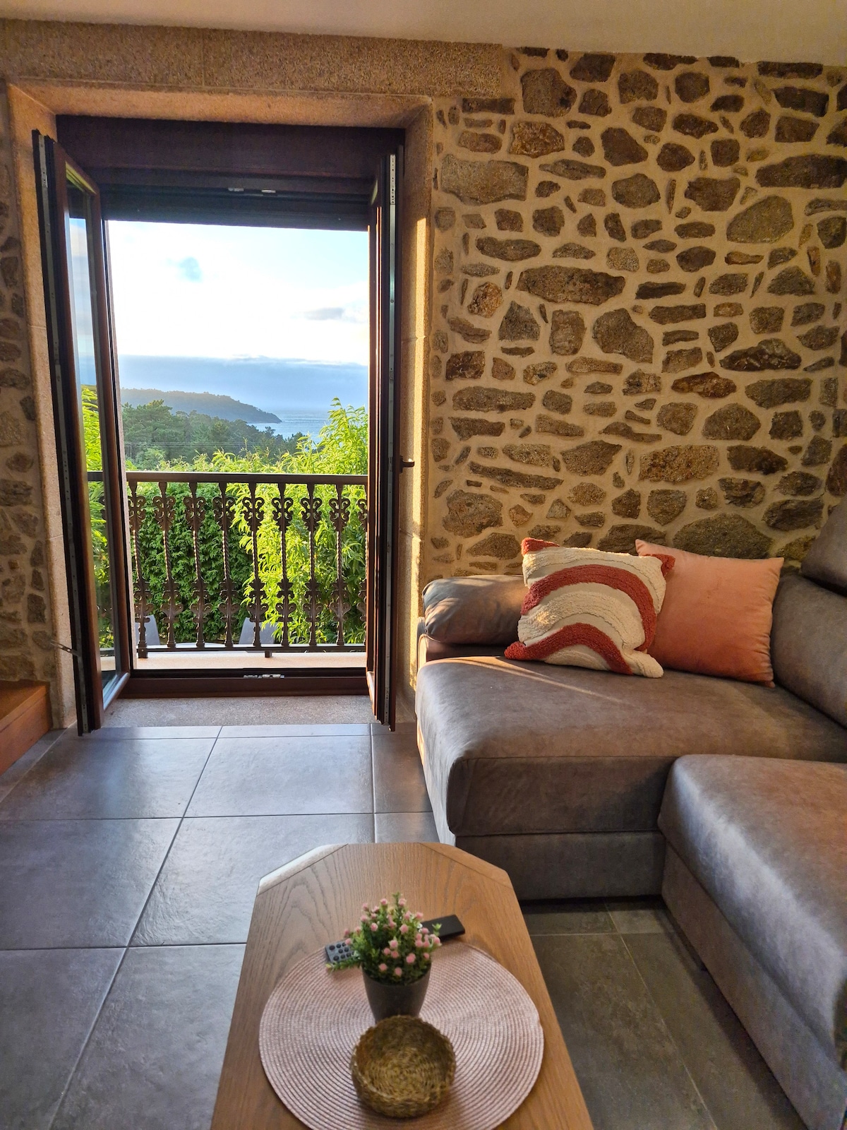 坐落在里亞斯拜薩斯(Rías Baixas)寧靜鄉村的迷人石屋。 這間旅居設有燃木壁爐、高速WiFi和一望無際的海景,非常適合家庭或小型團體入住。 欣賞郁郁葱葱的小徑、隱藏的海灘、加利西亞文化和美食,距離聖地亞哥德孔波斯特拉(Santiago de Compostela)僅30分鐘路程。