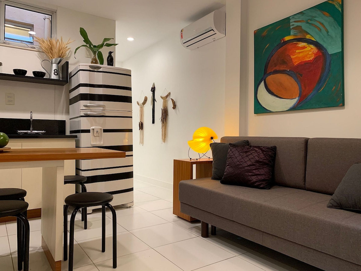 Modern Architect-Designed Studio in the Heart of Leblon Step into a stylish retreat in the center of Leblon! This newly renovated studio, meticulously designed by a renowned architect, offers a chic and comfortable escape featuring: • Spacious Queen Bed: Enjoy a peaceful night’s sleep on a luxurious queen bed. • All-Inclusive Facilities: Fully equipped for your convenience, including a modern kitchen, pristine bathroom, and more. • High-Speed Wi-Fi: Stay connected with fast and reliable