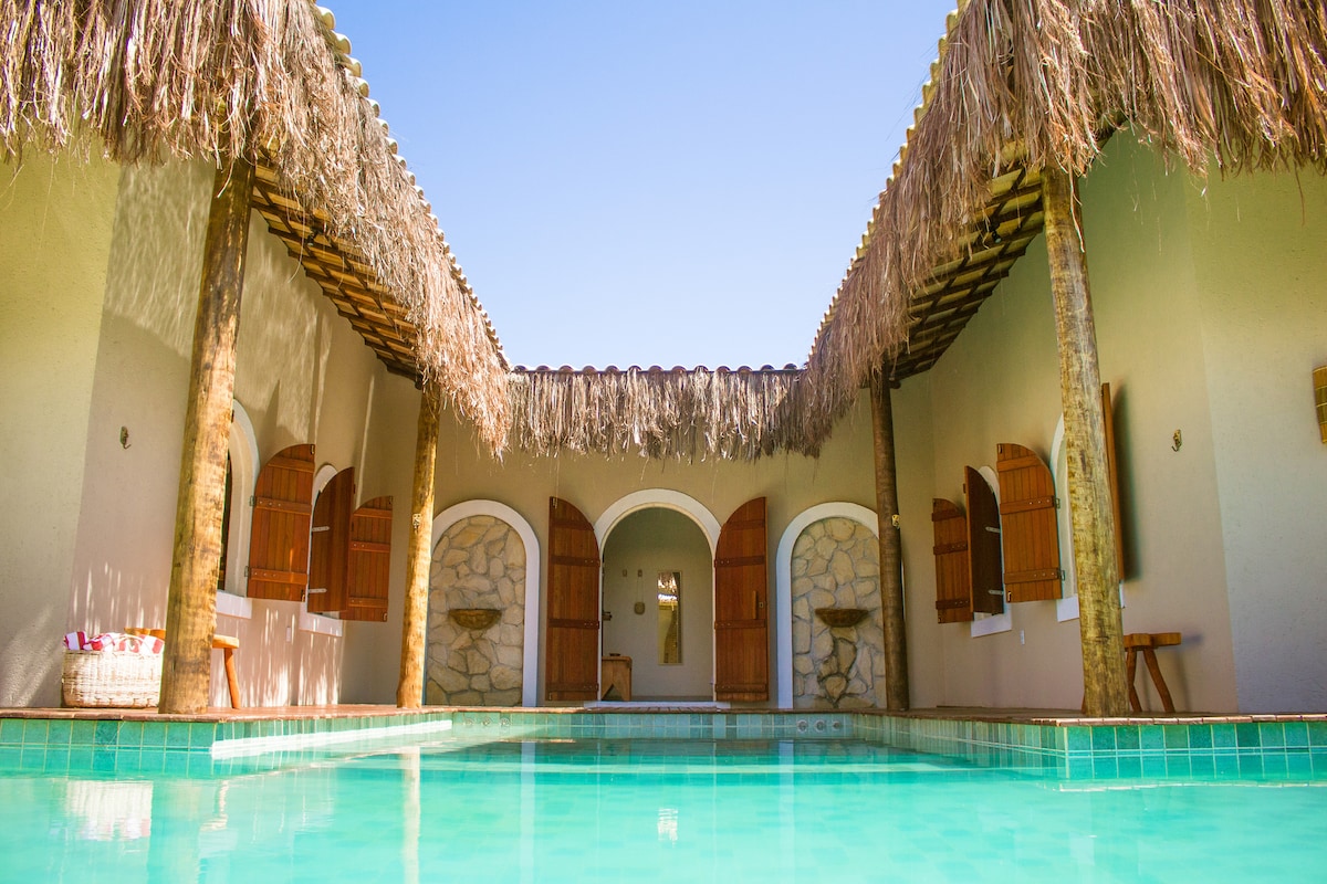 位於封閉式公寓內- AREIA的奇蹟-魅力之家。 完全的安全和寧靜。 帶私人泳池的豪華平房。 非常適合度蜜月或想要良好品味和隱私的人。 位於Praia do Toque海邊,這是São Miguel dos Milagres最好的海灘。 鄰近美味餐廳。 Jangadeiro在房子前面抓住他們,帶您步行前往該地區的天然泳池。 我們提供早餐