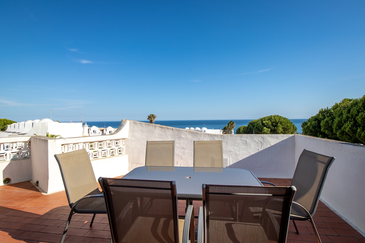 House with stunning sea views in a quiet, safe area. Features a large condominium pool, child-friendly pool, Wi-Fi, two bedrooms with en-suite bathrooms (one with balcony and fabulous sea views), living room, kitchen, WC, amazing roof terrace, and private garden (new kitchen and bathrooms). Just a short walk to beautiful Algarve beaches and the charming town of Armação de Pêra with shops, cafés, and restaurants. Enjoy scenic cliff trails and your perfect getaway.