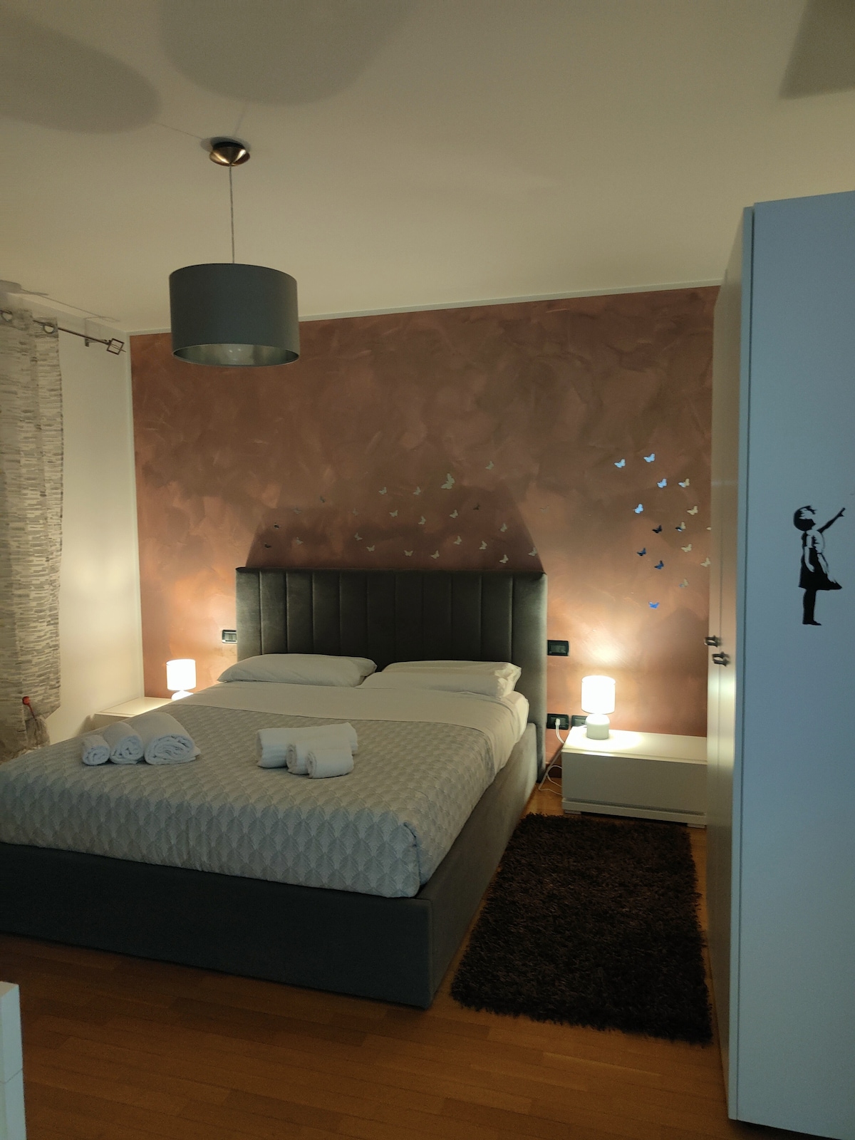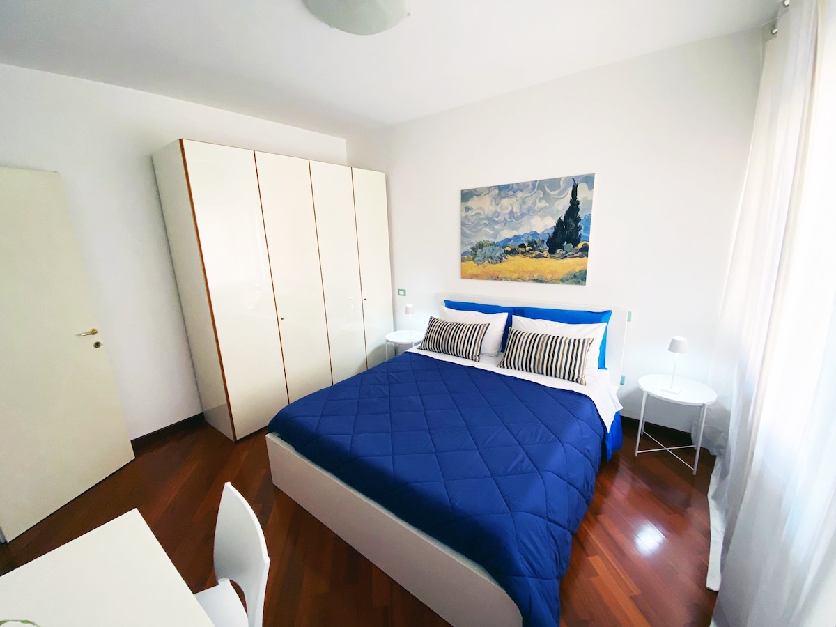 Appartamento vicino a Fiera e Policlinico con piccolo giardino, comodo parcheggio, elegante, di design e raffinato, ideale per soggiorni business o in occasione di eventi culturali. Situato in una zona verde e tranquilla, garantisce relax e privacy, pur trovandosi a pochi minuti da autostrada, fiera, policlinico e centro città. Una soluzione perfetta per professionisti e viaggiatori in cerca di comfort, stile e funzionalità.