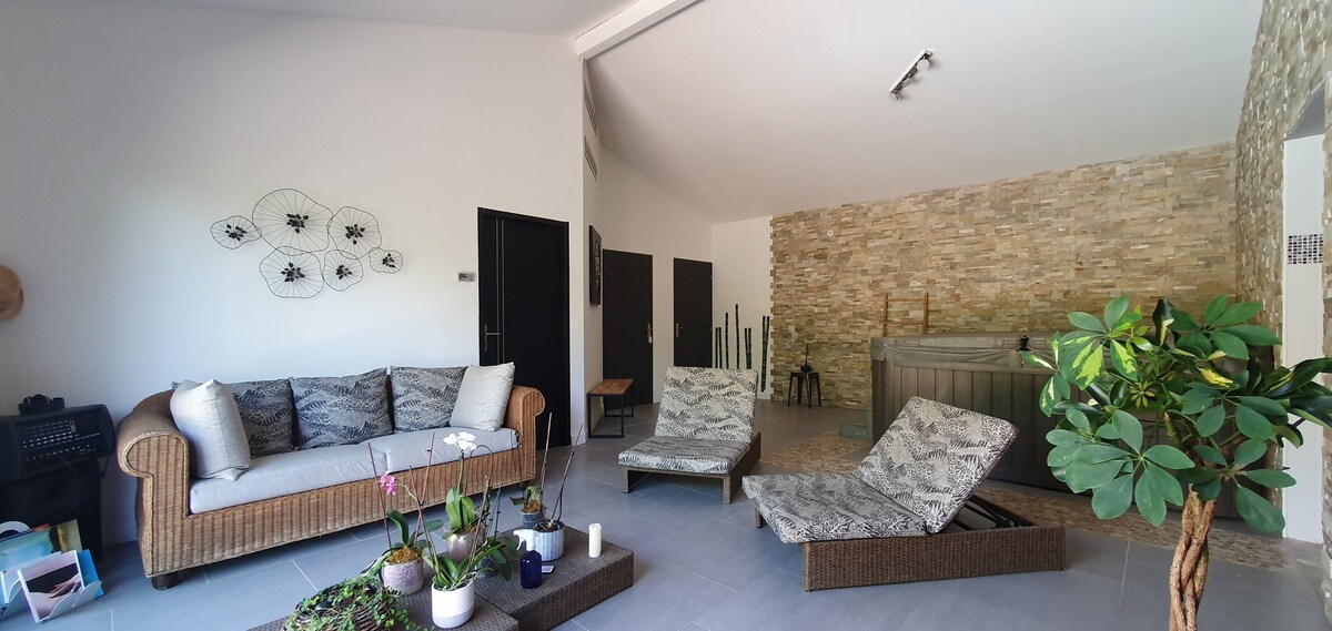 歡迎來到我們迷人的小屋,在大自然中放鬆身心。位於多爾多涅 (Dordogne) 省中心,地理位置優越,附近有許多旅遊景點。房子裝修精美,設備齊全,可容納一對夫婦或帶一個孩子的家庭。您可以享用一個非常大的私人露臺,配有桌子、烤肉、躺椅、遮陽傘以及一個花園。 還有兒童遊樂場和健身房供您使用。有英法電視頻道。