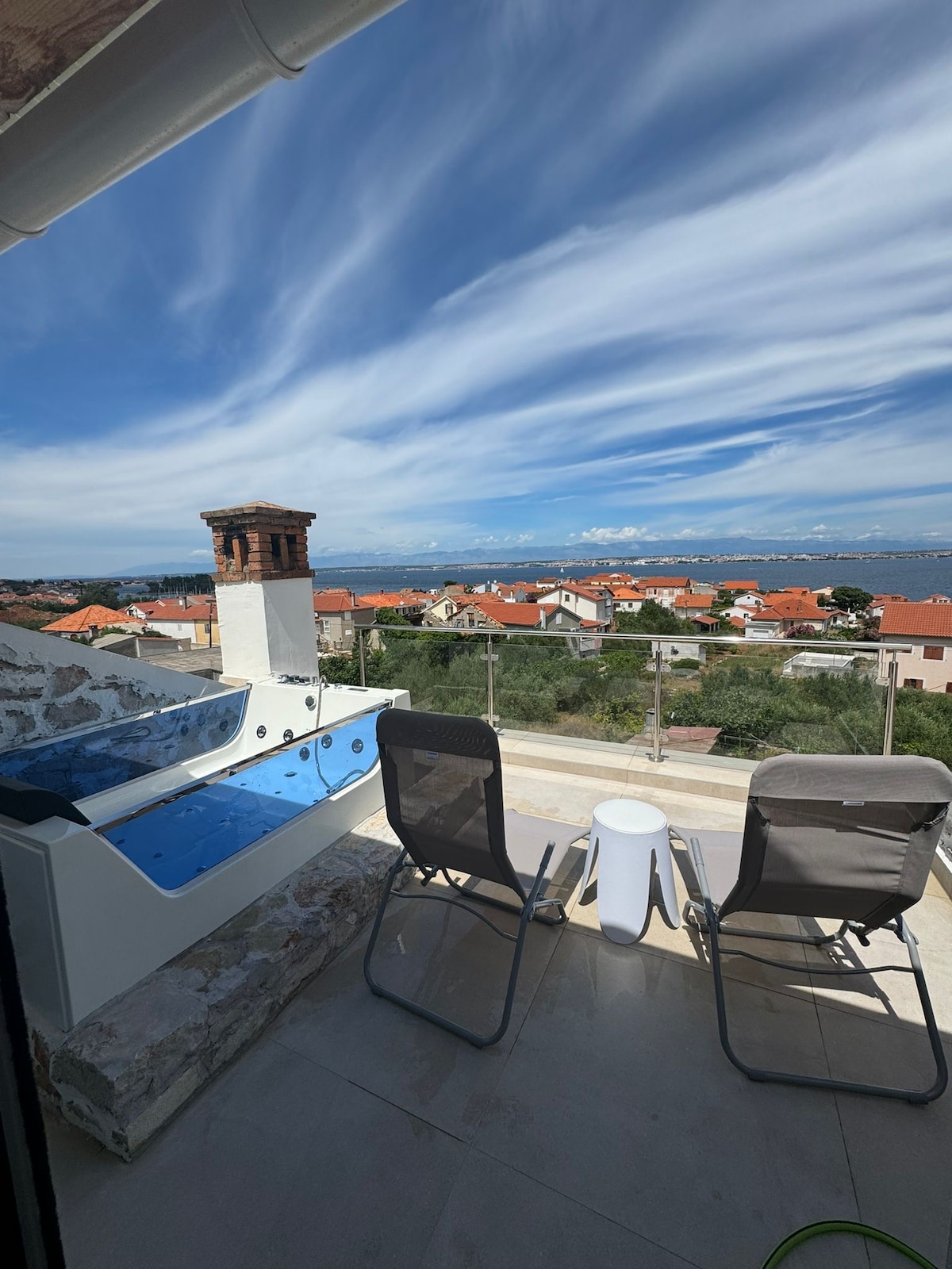 非常舒適的公寓,我只可供2人入住。非常適合情侶。非常適合騎自行車和騎自行車的人。 獨立的入口,公寓位於閣樓上。它由兩個露臺組成,其中一個很大,可欣賞美麗的海景、整個扎達爾水道、扎達爾和島嶼。 設備齊全的廚房、寬敞的房間,配有雙人牀、沙發和起居區域。露臺上的休息桌和陰涼處。私人停車場。