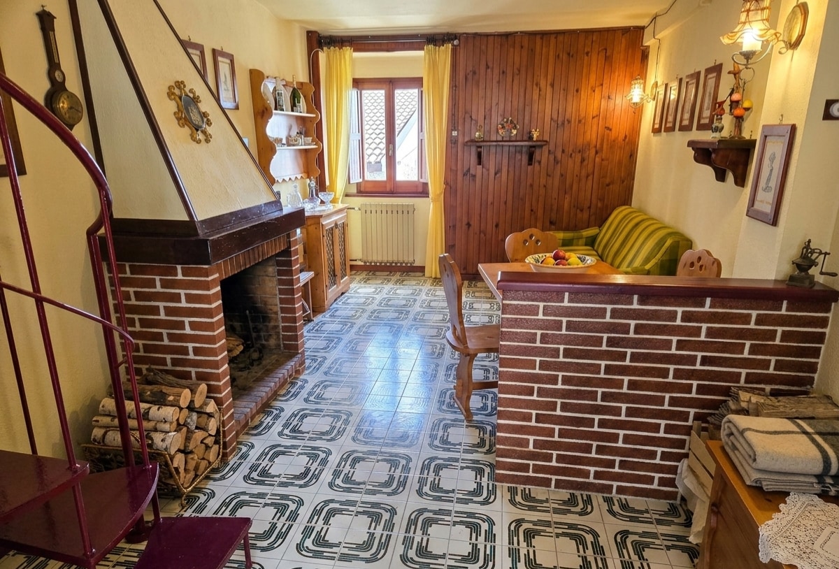 Caratteristica casa di montagna modesta e accogliente dove il calore del camino ti avvolge in un'atmosfera rilassante per goderti una vacanza confortevole in coppia o in famiglia. Provvista di biancheria da letto e da bagno, dotata di cucina attrezzata, divano letto e camino. Una scala in cotto porta al piano superiore dove si trova il bagno, la cameretta con letto a castello e la camera matrimoniale. La casa è situata in un parco privato dotato di parcheggio. A pochi minuti dal centro.