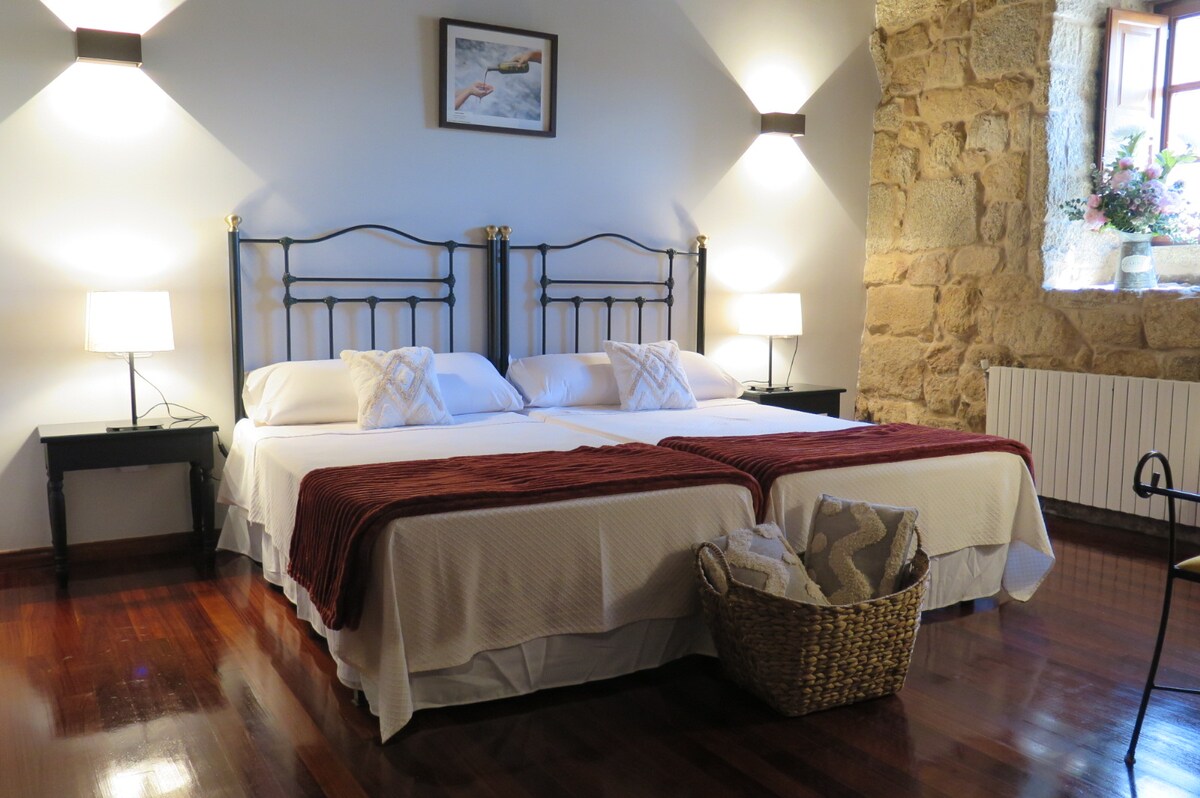 Encanto rural en Pazo Carballo San Paio Alójate en nuestro boutique hotel rural, donde la tradición gallega se fusiona con el confort moderno. Habitaciones acogedoras con detalles rústicos y vistas a la naturaleza. - Parking gratuito en el recinto. - Entorno tranquilo, ideal para desconectar. Perfecto para parejas y viajeros que buscan autenticidad. ¡Reserva ya y vive la magia de Galicia!