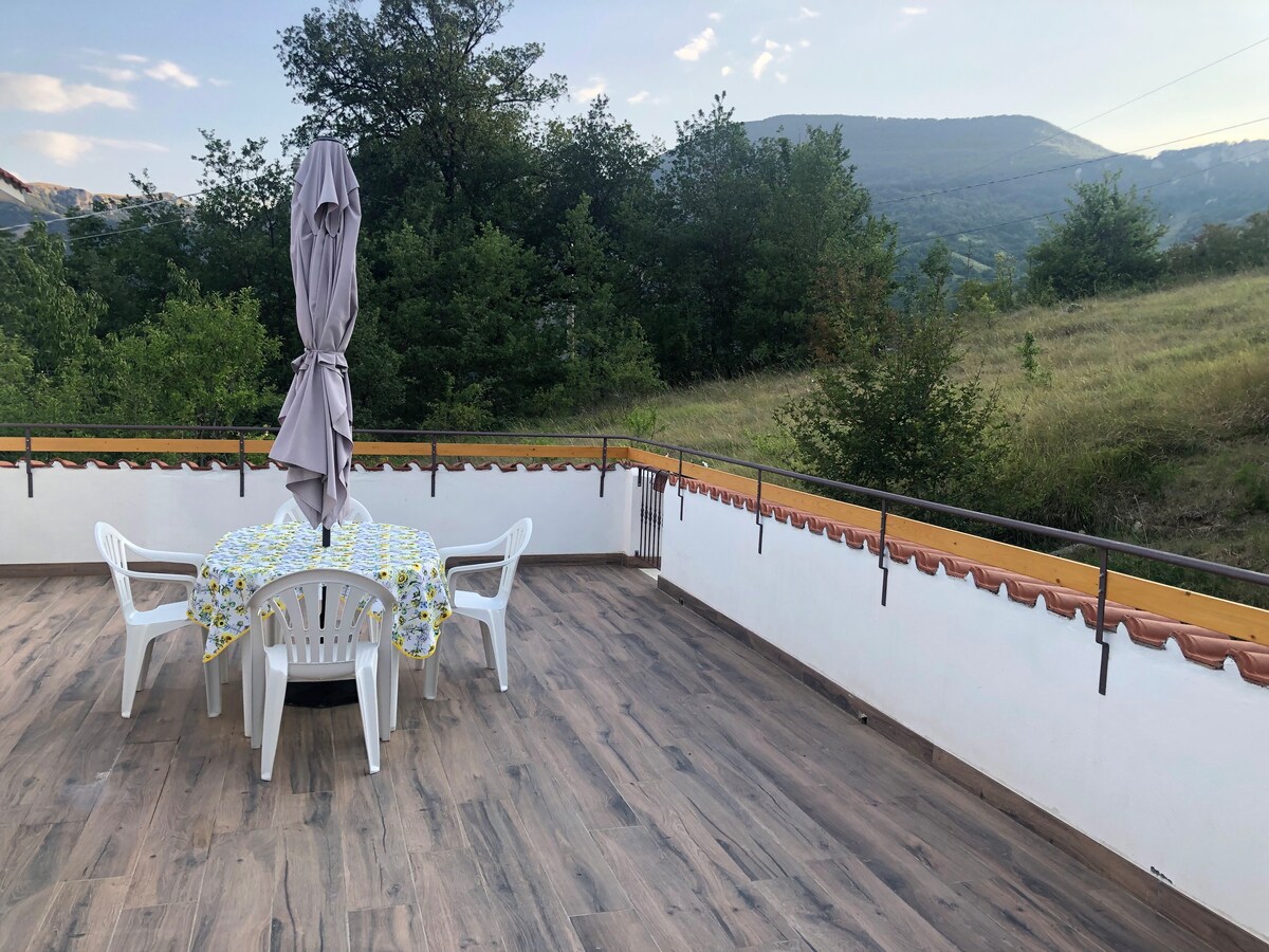 Villa indipendente con vista stupenda sulla montagna Maiella in un borgo di campagna del comune di Alanno, Pescara. PET FRIENDLY, zona verde recintata (1500mq) con pergolato per pranzo all'aperto, barbecue e portico. Alloggio rustico con tre camere doppie, di cui una adibita a tripla, angolo cucina, due sale con camino e TV, ampio bagno, bagno, balcone, terrazzo. A 20-30 km dall'Aeroporto di Pescara e dal MARE, alle pendici della montagna Majella, a 2 km dall'uscita autostradale di Alanno-Scafa.