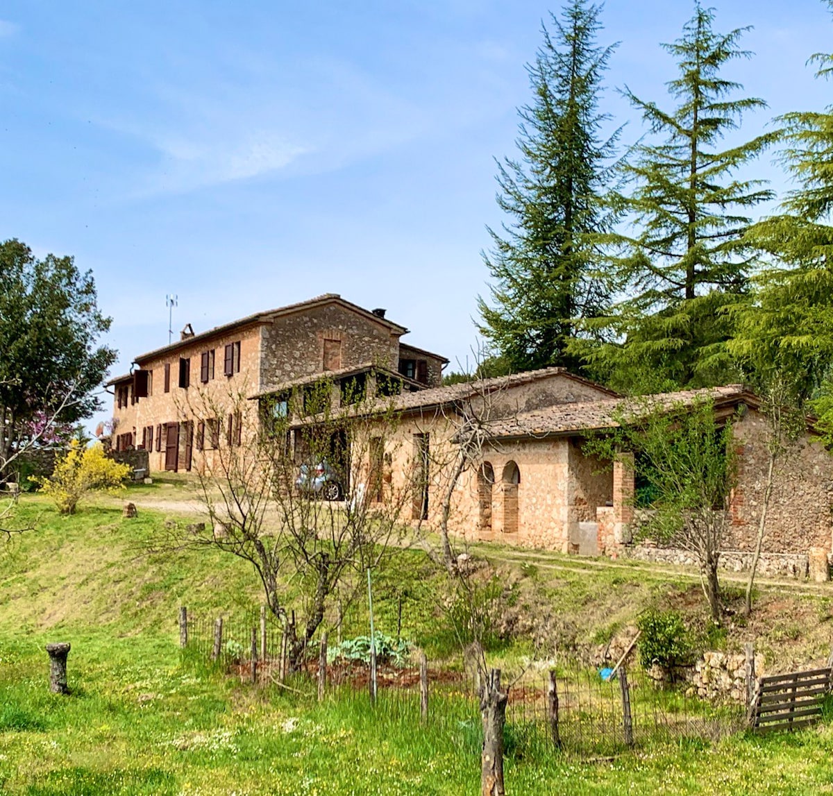 石頭鄉村小屋,獨立於托斯卡納鄉村的錫耶納省,有大花園、門廊和涼亭。我們的房子位於基烏斯迪諾市的鄉村,距離兩個主要城鎮蒙蒂奇亞諾和基烏斯迪諾僅5分鐘,距離美麗的加爾加諾修道院僅10分鐘。距離錫耶納、蒙特里久尼30分鐘,距離佛羅倫斯1小時,距離海邊30/40分鐘。距離美麗的佩特里奧洛溫泉僅20分鐘路程。