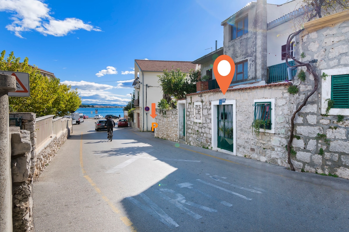 Waterfront house on peaceful Jadrija beach is a perfect residence for people wanting to relax and get away from the hectic modern lifestyle. The house consists of 4 bedrooms, two baths, washing room, 2 kitchens, large terrace on the top floor, garden and shaded lviing room just next to the beach. Amenities include grill, paddle boards, sun loungers, WiFi, large TV-s and beautiful view of the sea. Shared parking available 20m away.