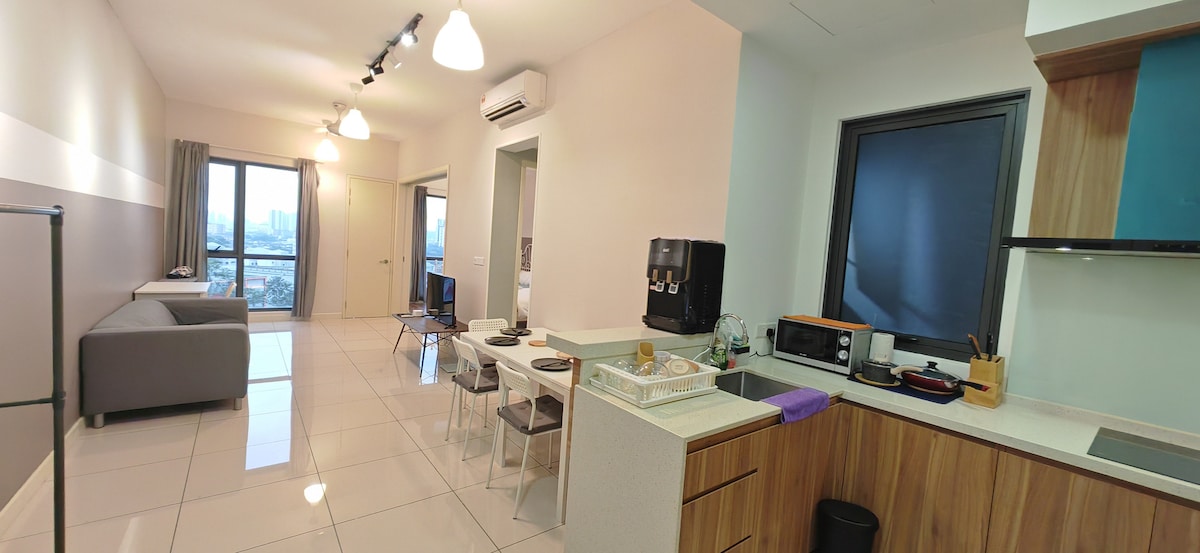 您好! 欢迎来到 CactieHome。 这是一间整洁、明亮、简约风布置的 531 平方英尺单间公寓,配备了所有基本生活必需品。 CactieHome 位于一座 24 小时保安严密的高楼单间公寓的 15 楼,设有私人停车场。 WiFi 网速:200Mbps 楼下有 NSK 大卖场、7-Eleven、餐饮店和 24 小时自助投币洗衣店,只需按一下电梯即可到达。MRT Putra Permai 捷运站离这里仅需步行 10–12 分钟。