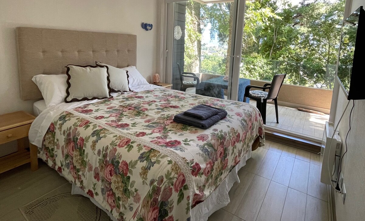 公寓坐落在非凡的自然環境中,有原生樹木,靠近普孔市中心和海灘,24 小時門房。11 平方米的寬敞露臺。大樓門口有專屬停車位。有 1 間雙人床房和 1 張客廳內嵌式床。前往天空中心 (Centro de Sky) 和溫泉路 (Ruta de las Termas) 很方便。