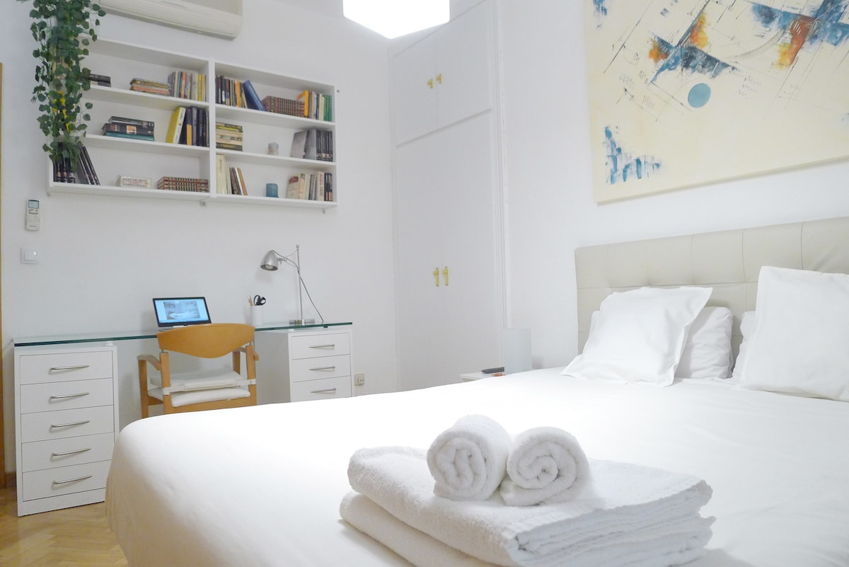 打開高大的木製百葉窗,讓晨光灑進房間,房間內有外露的木框架和白色的磚牆,直達高高的天花板。在優雅的壁爐前,享受陽光充足的開放空間,坐在餐桌旁享用早餐。 我在馬德里有幾間公寓,但這是我最近裝修的,非常注重細節。 我真的盡力讓房客盡可能舒適。光線充足,很漂亮。 如果有人閱讀我的評價,他們會注意到我非常關心我的房客,我隨時都可以提供服務,並盡力讓他們在馬德里時有家的感覺。 您將擁有整套公寓。 我們會親自與您見面,並為您提供鑰匙。預訂後,我會提供我的電話號碼,如有需要,您可以發送短信或打電話給我。 公寓位於馬德里最漂亮、最時尚的社區之一Chueca。步行即可抵達主街Gran Via。靠近普拉多、太陽門和麗池公園。周圍有很多美妙的地方可以享用小吃和一杯葡萄酒。 我們距離Gran Via大約一個街區,您可以步行前往任何地方,但附近也有地鐵站和巴士站。 如果您開車前來,步行約2分鐘即可抵達公共停車場。