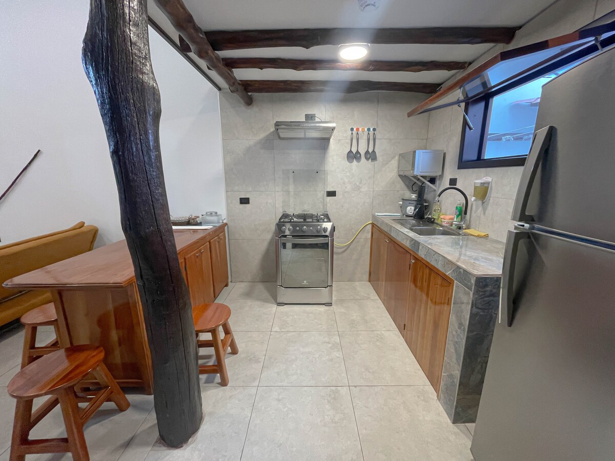 Kick back and relax in this calm, stylish space. A bright and comfortable two-bedroom apartment in the heart of the Galapagos, Santa Cruz Island. Surrounded by vegetation, it is situated only four blocks from the main street, five minutes walk from the main dock, and at the entrance of Tortuga Bay. AMAZING terrace with outside dining areas. Perfect for couples or a small group of friends. It offers working spaces, a kitchen, a washing machine, all you need to have your own home in the Galapagos.