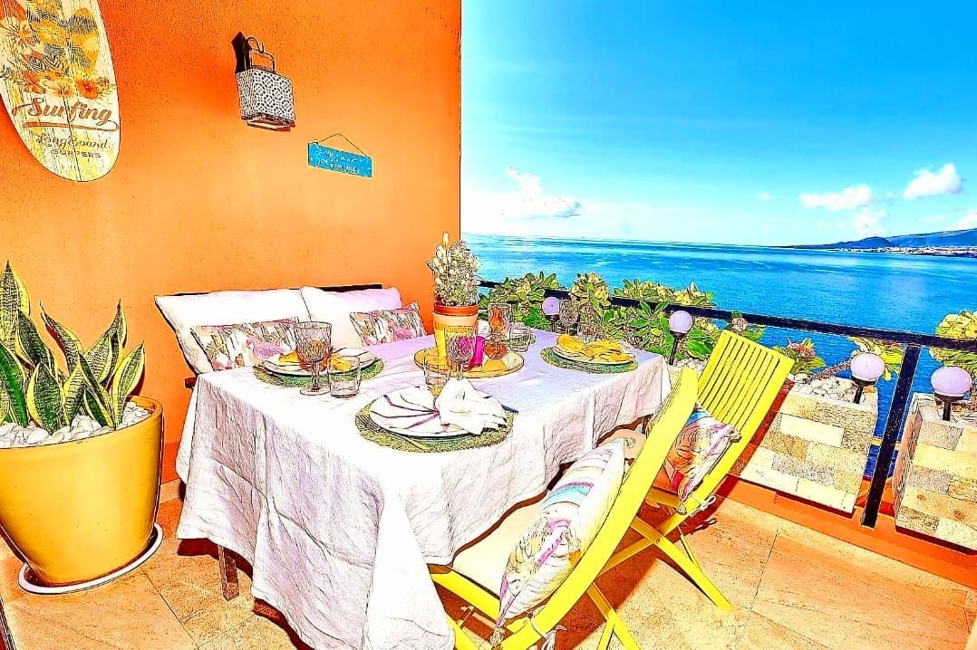 美妙的70平方公尺閣樓,可欣賞驚人的海景,頂部還有30平方公尺的私人日光浴室。 漂亮的環境,特別的裝飾。 非常適合4人的情侶或家庭,雖然客廳的牀沙發可容納6人。 它有兩間臥室,一間可俯瞰大海,另一間可俯瞰公共花園。 公共區域也有遊泳池。 這棟建築是一個安靜的區域,不允許舉行派對。 很抱歉,也沒有寵物。