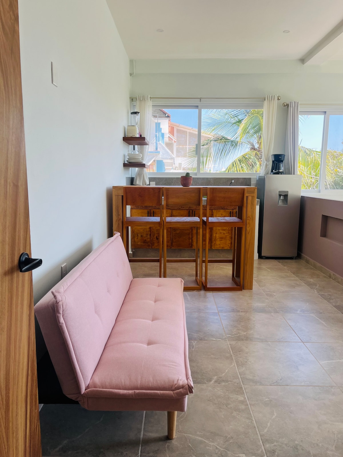 Enjoy easy access to everything from this perfectly located accommodation in the center of Puerto Escondido. It’s a small, newly remodeled apartment with everything you need to enjoy your stay. And if you’re combining pleasure with work, we’ve got you covered, as we include a workspace with a desk, chair, and a monitor. We also have two internet providers with automatic failover backed up by a UPS (uninterruptible power supply).