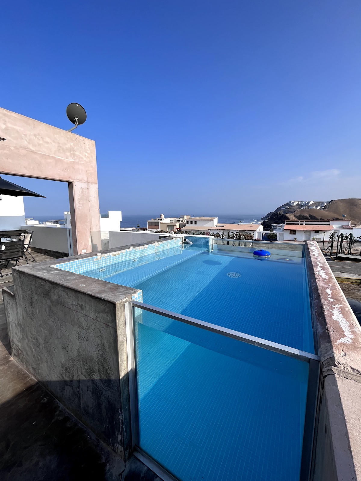 美麗的海灘房屋,非常適合與家人、朋友一起享受,遠程工作,欣賞美景,靠近大海。 生態區域可觀察海洋物種,隱私和非常安全, 2個帶烤架和泳池的露臺, 6個停車場( 2個內部停車場和4個外部停車場) ,距離亞洲大道20分鐘,距離Cerro Azul 5分鐘。 距離Panamericana Sur約125公裏。 它只包括牀單和枕頭。
