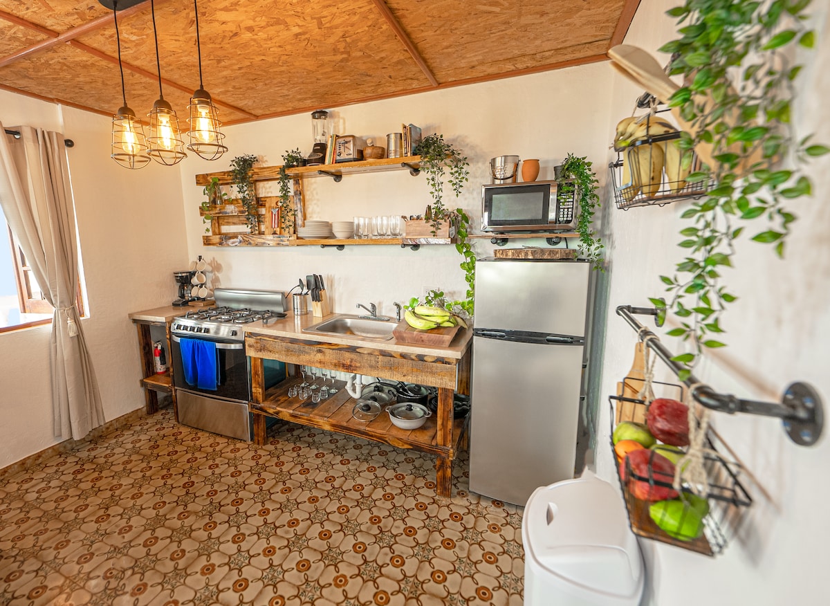 這間生態小屋(太陽能)就像一棟坐落在森林中的樹屋,非常適合放鬆身心、安靜地反思和與大自然交流。 在Quebrada Lucia的純淨療癒水中沐浴,水流穿過農場(私人游泳!)「……灑上香水,撒上鮮花……」 此房源是一個活生生的有機農場/度假勝地,致力於再生農業、瑜伽/冥想和棲息地再生,為我們的社會和地球治療做出貢獻。