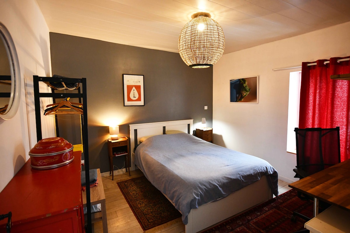 歡迎來我們的附屬建築住幾天。全新住宅,設備齊全。寬敞的客廳,高高的天花板和外露的橫樑。 可以在房子前面的街道上停車。我們距離拉羅謝爾市中心 4 公里,距離商業區 800 公尺。 毛巾、床單和毛巾,一張床 5 歐元,兩張床 10 歐元。我會在您抵達前為您鋪床。 嬰兒用品:如有需要,可提供折疊式嬰兒床、便盆、高腳椅、嬰兒車。