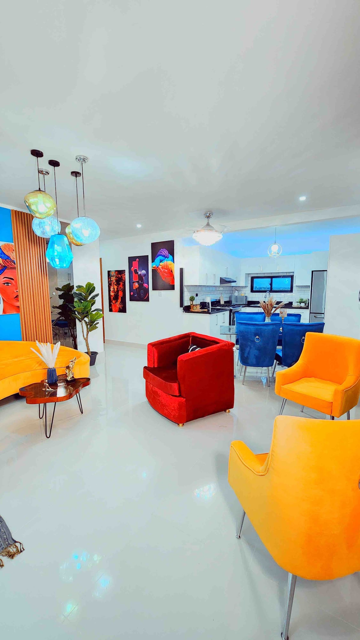 This new apartment is the perfect stay for a family and friends getaway. It’s located 10 minutes from the Santiago Airport, filled of amenities, and fully furnished. There are 3.5 bathrooms, 3 bedrooms with A/C and a guest bedroom with a twin bed, fan and it’s own bathroom. fully equipped kitchen, Two living room,A/C, Two 50” Smart TV, Bluetooth Speakers and two parking spots. You can also enjoy the surroundings of the complex such as, the playground, pool, event room, lake, and sport court.