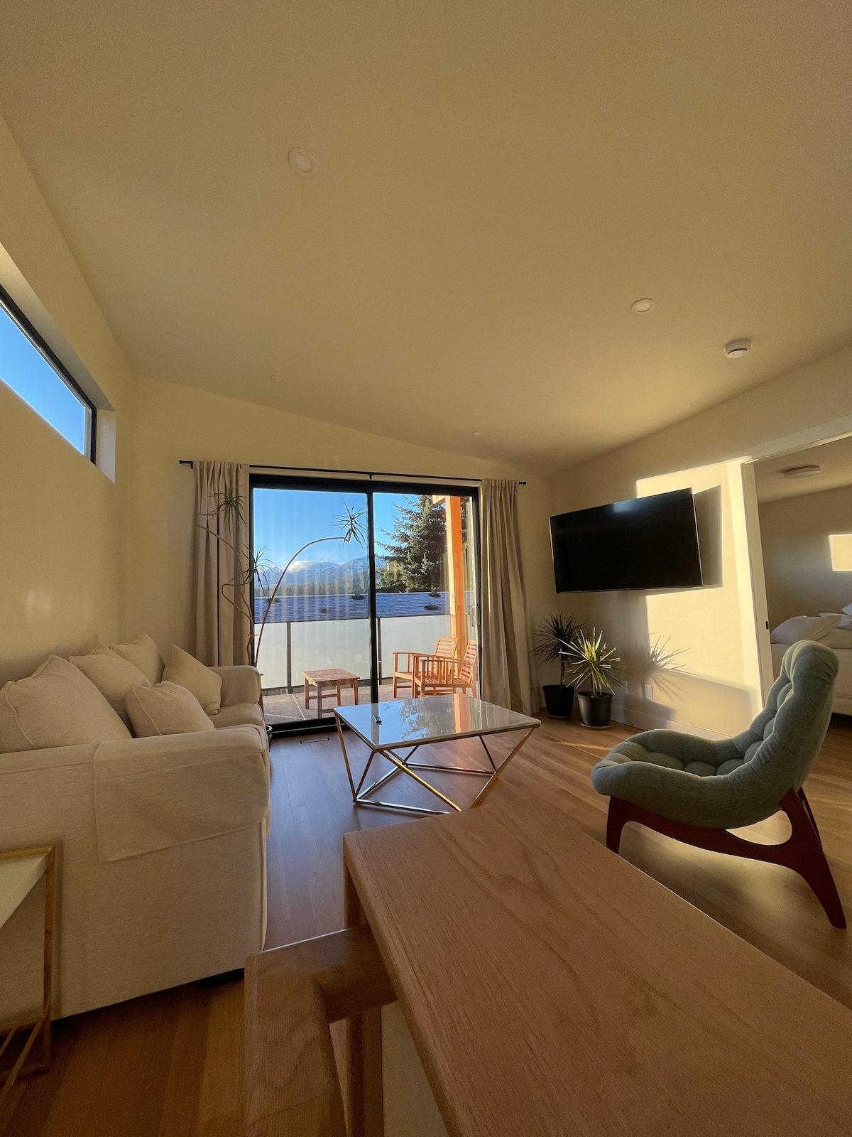 這間獨立小木屋位於一個安靜的社區,設有空調和拱頂天花板,前方的玻璃窗可俯瞰貝恩斯灣和溫哥華島的山景。 獨立門禁。 閣樓的雙人牀,主樓層有單人牀。 獨立浴室,配備淋浴間。 通往海灘的私人通道。 靠近渡輪,步行即可抵達當地村莊。 請注意,此旅居不適合行動不便人士或幼兒入住。 我們不會收取清潔費。
