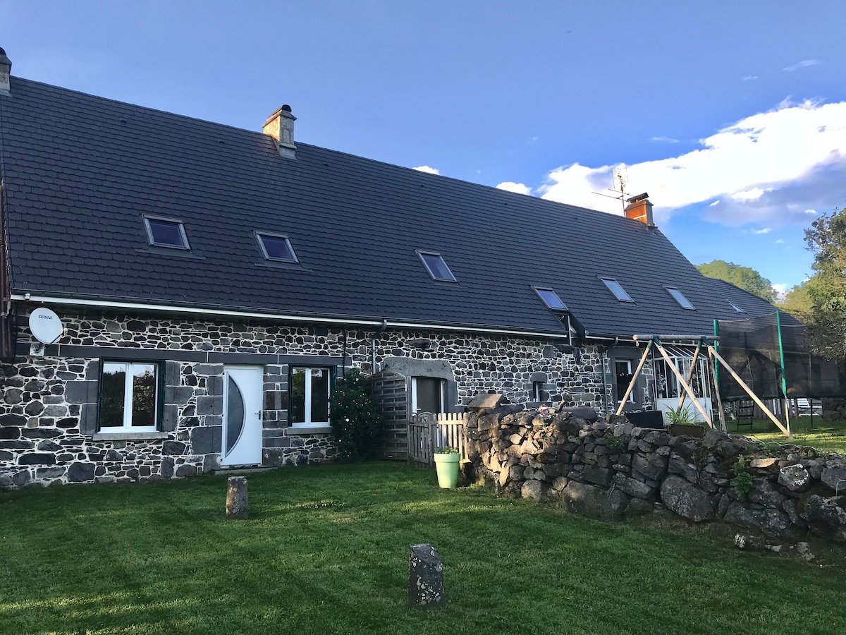 Dans un gite ( prix réduit sur une réservation à la semaine) créé dans une grange en pisé de 1850, sur 120m2 une grande pièces à vivre et à l’étage 2 grandes chambres s’ouvrant sur une terrasse de 40m2 avec vue sur le grün du Chignore, table et BBQ dans le jardin. En hiver venez vous réchauffer au bord de l'insert en rentrant de balade et en mangeant une raclette ou des crêpes. Randonnée à gogo dans le parc du Livradois Forez, lac et rivière. On aime le renouveau Val et Titi Dogfriendly
