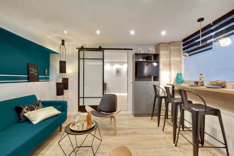 Boasting herringbone parquet flooring, fine furnishings and abundant natural light, this sophisticated 110m2 apartment offers a bright, elegant, warm and luxurious atmosphere. The apartment, with fireplace and moldings, combining charm, calm and comfort is located in one of the oldest passages in the historic center of Paris. This apartment has an official tourist accommodation operating license. So it's perfectly legal.