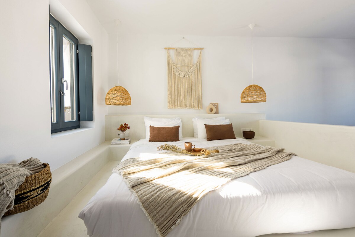 從房源的屋頂花園可欣賞城市、城堡和納克索斯舊城區的景色,為您提供難忘的景象,尤其是在日落時分。住宿位於市中心,步行即可輕鬆前往Chora最重要的景點、阿波羅神廟(Portara)、納克索斯城堡和納克索斯考古博物館,以及商店等。設備齊全,配有舒適美麗住宿所需的一切!