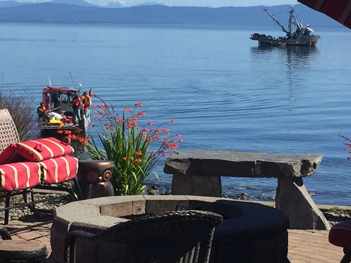 Life is perfect in this new one bedroom suite on the ocean. If you like to kayak, canoe or dig for clams we can accommodate, or you can simply kick back and enjoy the spectacular view. The suite is attached to our house and sleeps four. There is a private bedroom and a queen Murphy bed in the living room. Guests have their own entrance, patio and barbecue but are welcome to use our other patios as well. The kitchen is equipped with microwave, fridge and a double induction cooktop.