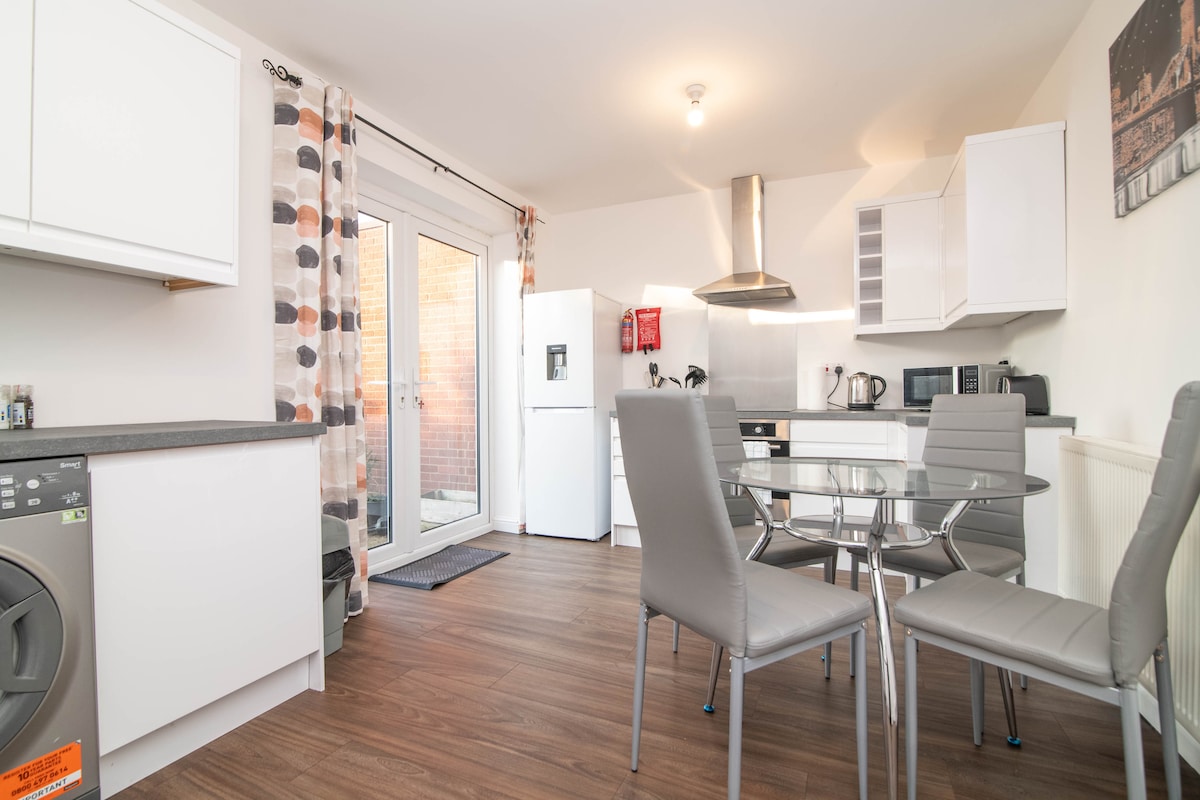 Next to Brierly Hill high street, two minutes from Merry Hill shopping centre, 12 miles from Birmingham city centre, Ideal for contractors and families visiting the area. Near to many facilities , grocery stores, takeaways all at walking distance. New built apartment with a homely and cosy finish. Two comfortable bedrooms with double beds. Fully furnished, top of the range kitchen with all necessities as seen in pictures. WiFi and TV with Netflix included. High quality washroom. Self check-in