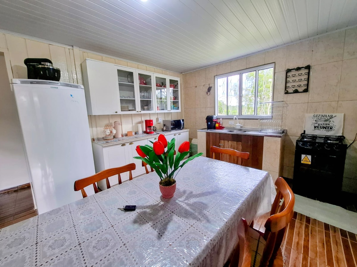 這間旅居位置優越,四通八達。 位於高級住宅區Quatro Barras的高級社區。 我們正處於擴張階段。 很抱歉,現場正在施工,但不會影響你的休息。 特色:爐具、微波爐、冰箱、風扇、電三明治機、碗碟、餐具和玻璃杯、基本廚房用具、鍋具、煎鍋、床上用品和毛巾。 距離Angelina Caron醫院3.9公里(8分鐘車程);距離Quatro Barras中心1公里。