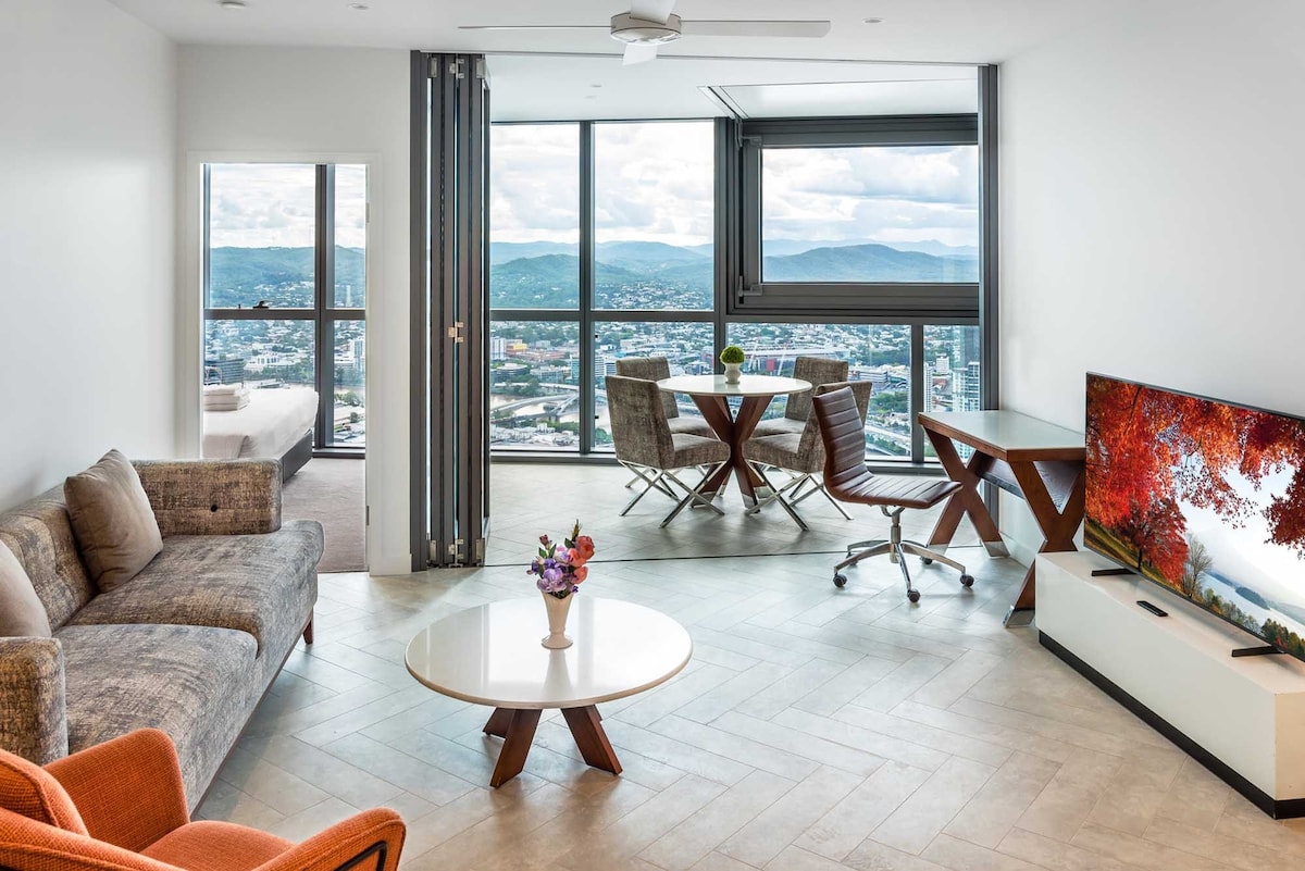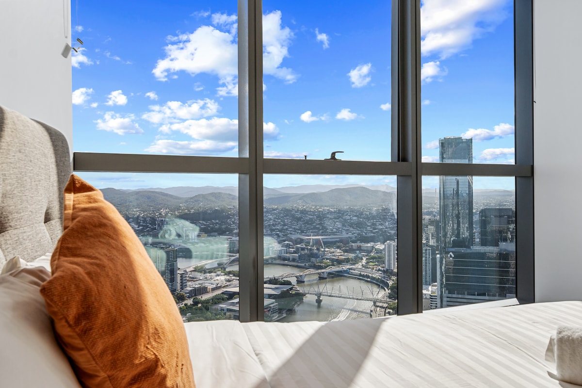 我的公寓位於26樓,高聳於城市上方,從客廳可180°無間斷地欣賞美麗的布里斯本河。這間公寓裝飾精美,維護得乾淨整潔,是您探索和享受南布里斯本和中央商業區文化的理想基地。 大樓位置方便。州立圖書館、博物館和QPAC就在附近。步行即可抵達布里斯本市、南岸和西區。
