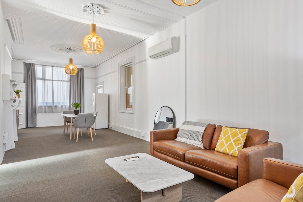 這間由囚犯建造的分層式古蹟小屋充滿個性,曾經是19世紀囚犯打理的菜園的一部分。 藍石牆和坑鋸地板讓歷史栩栩如生,而配備燃木壁爐的舒適開放式用餐區則營造出溫馨的休憩空間。 享受傳統魅力和現代舒適的完美融合,距離中央商業區、海濱、薩拉曼卡和巴特利角只有幾步之遙。