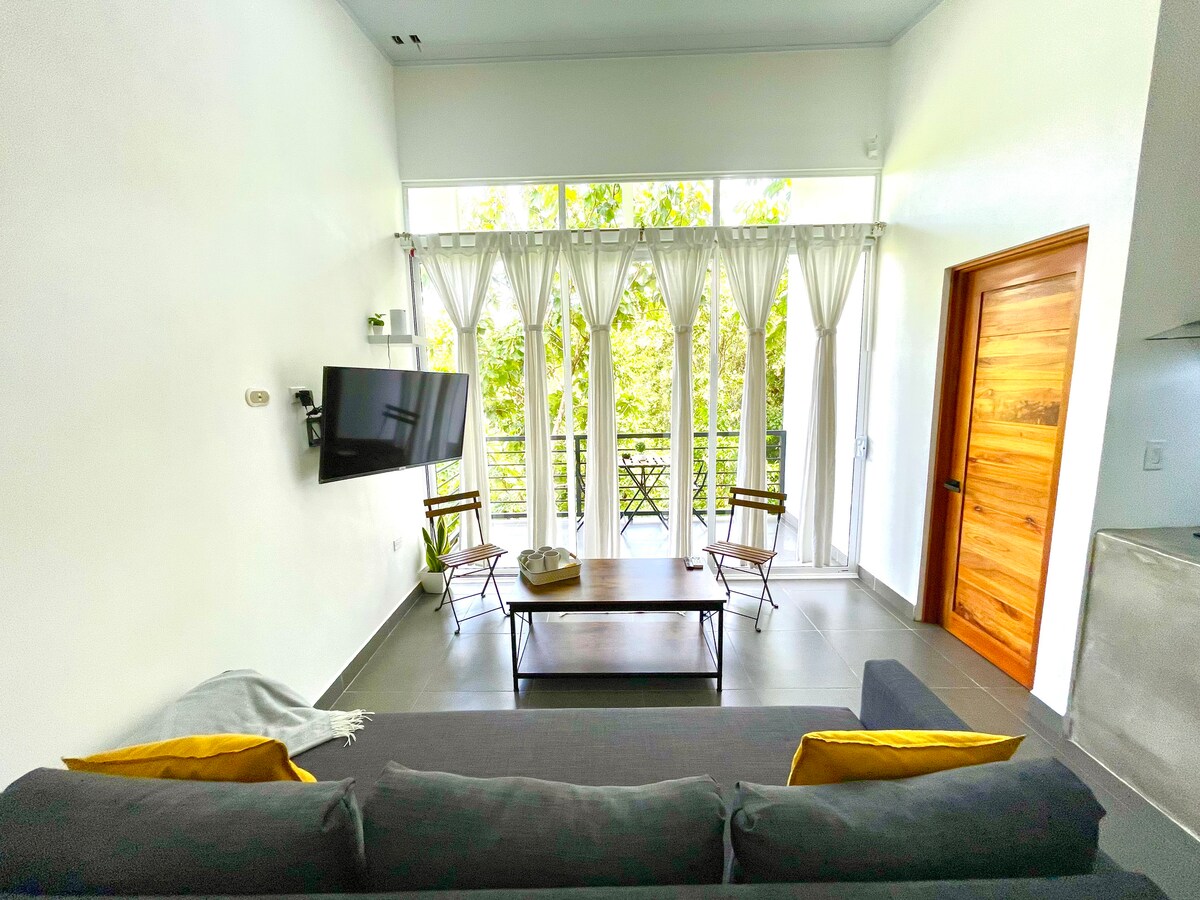 這是一間獨立單間公寓,不僅僅是一間房間。有廚房、全功能浴室、客廳/用餐區域、空調、電視、WiFi和共用泳池。有一張雙人床,我們會為第三位房客額外收費,並提供一張單人床。 如果此公寓已被預訂,請查看我們在Casa Pargo的房源,我們有6個非常舒適的單位。四周都是大自然和迷人的景觀。