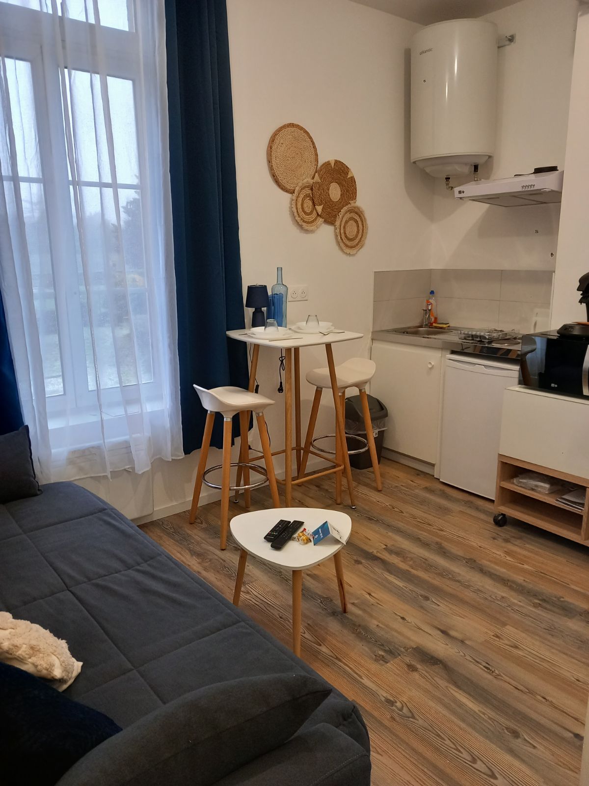 Charmant studio indépendant tout équipé avec terrasse privative. Entièrement neuf. Avec box 4G, TV, box SFR, Netflix, enceinte bluetooth,cuisine entièrement équipée, vaisselle et ustensiles, micro-onde, cafetière, frigidaire, four, plaques électriques etc, 1 lit double en mezzanine et 1 clic-clac couchage quotidien matelas dunlopillo. Convient aux professionnels en déplacement. Cocooning et découvertes. Bien desservi, gare, autoroute, rocade proche. À 20 min de Compiègne, 1H d'Amiens ou Paris