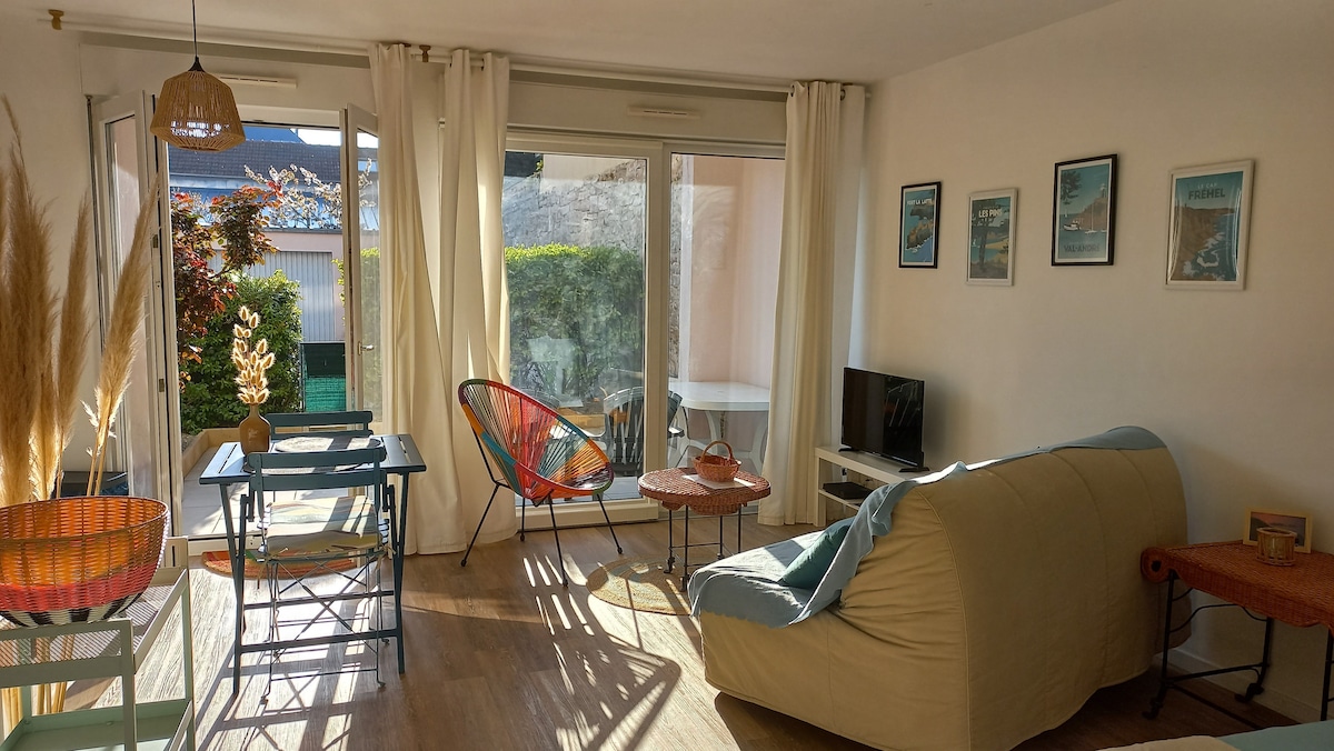 漂亮的小石屋,全新翻修,有 20 平方公尺的大臥室,配有 160/200 高級大床。浴室配有漂亮的意大利淋浴間、全新的家具和廚房,沒有對面的房屋,景觀開闊,有 15 平方公尺的封閉露臺,街道上人流量不大。非常適合週末或一週的休息。距離 RN12 5 分鐘,距離 GR34 500 公尺,距離麵包店、肉店、披薩店 1 公里,距離公園和步道 500 公尺。距離聖布里厄克灣 500 公尺