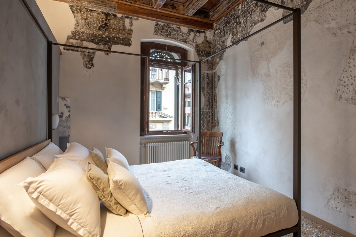 這個地方的現代家具和外露的石牆之間的對比令人著迷。它坐落在維羅納歷史中心最迷人的地方,在義大利最美麗的教堂之一聖安娜斯塔西亞教堂前面,距離羅馬石橋(200公尺)僅幾步之遙。附近有大教堂(200公尺)、羅馬劇院(400公尺)、茱麗葉之家(400公尺)、但丁廣場(300公尺)、阿爾厄布廣場(350公尺)和最卓越的紀念碑競技場(850公尺)。