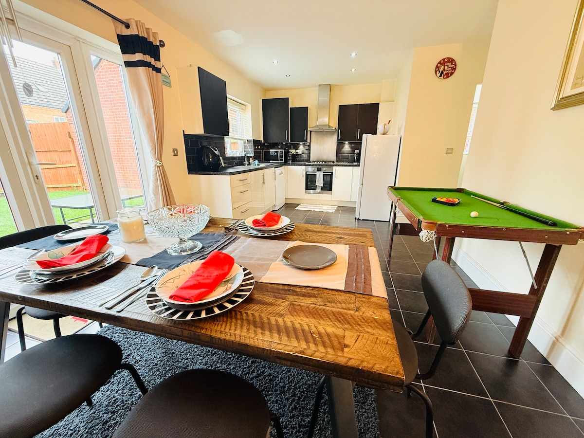 Cosy family 3 bedroom house, massive living and dining area. Garden with seating & spacious bedrooms. Stylish luxury home close to everything! Train station is a 10 minute walk away, spacious drive way with off road parking outside the property. Shopping center, gym, The Royal Orthopaedic Hospital only 5 min walk & supermarkets is all within 5 minutes walking. 10 minute drive into Birmingham city center, 5 stops on the train. 2 minutes walk to the bus stop, everything is on your doorstep.