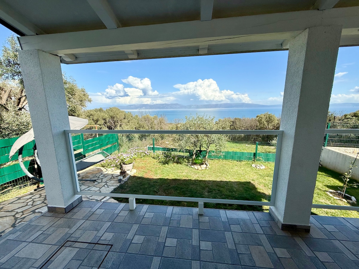 最近翻新的平房位於安靜的Ravni村(距離拉賓約10公里,距離拉巴克15公里)。它位於第一排,四周環繞著綠意盎然的景色,距離海灘不遠(步行6分鐘),可欣賞美麗的海景。平房有明亮的客廳、廚房和用餐區、陽臺、花園、浴室、小走廊和臥室。