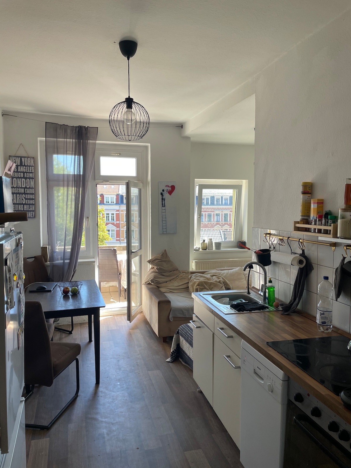 約 45 平方公尺的閣樓公寓,有走廊、客廳、臥室、小孩房、廚房和帶淋浴的浴室。 樓梯間有更多可用空間。 如有需要,也可提供兩輛「簡單」的自行車(無需額外收費)。 公寓位於拉德博伊爾東部的一條小巷上,基礎設施非常好,與德累斯頓相連。4 號電車站就在附近。10 分鐘內即可抵達德累斯頓。