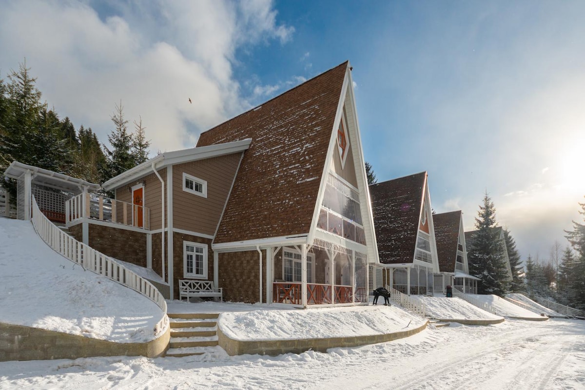 我們邀請您來到Viiana 2的舒適小屋,位於Bukovel度假村的高山框架,可欣賞Polyanitsa村的Khomiak山和Sinyak的美景,以及配有按摩浴缸的全景桑拿房(當場單獨付款)。 Viyan的小屋建築羣是您放鬆度假的理想場所,放鬆身心與大自然的威嚴重。