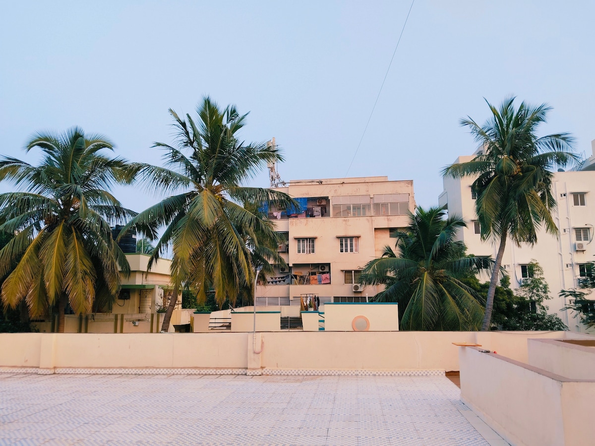 如有任何問題,請隨時聯絡@ 8074691094。 歡迎來到維扎格(Vizag)評價最高的Airbnb。我們喜歡接待房客,因此歡迎來到這個巨大的海景頂層公寓,體驗我們的待客之道,距離庫爾蘇拉潛水艇博物館(Kursura submarine museum)僅300公尺,位於安靜安全的住宅區。巨大的露臺和陽臺,可欣賞海灘和城市景觀。附近有很多餐廳。包括每日清潔服務,讓您可以充分享受假期。