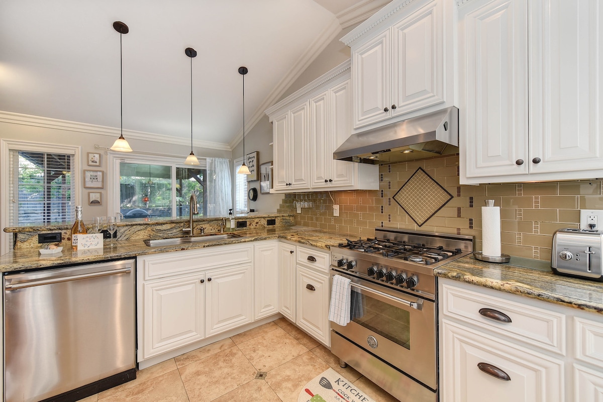 可愛的私人3間臥室和2間全功能浴室1080平方英尺房源,附帶2輛車車庫,位於安全安靜的區域。方便的街區,靠近跳躍和高速公路。廚師廚房、3 台平面螢幕 ROKU 電視(客廳和客房)、按摩浴缸、從客廳和主臥室的滑動門可通往私人水果樹林後院,有遮蔭露臺、6 人戶外餐桌。價格包含專業的每週景觀服務。非常完美舒適的地方!