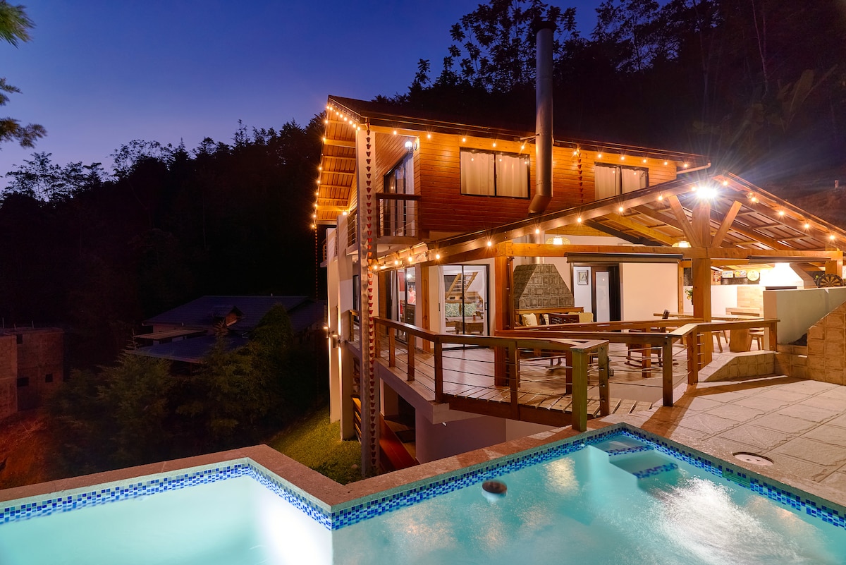 Hermosa villa para toda la familia, de tres plantas, ubicada en medio de dos reservas científicas, Ebano verde y Las neblinas, a 10 minutos de las piscinas naturales El arroyazo, una alternativa ideal para unas vacaciones en descanso, así como para celebraciones, pasadías familiares o de amigos, entre otros. Cuenta con pequeña piscina con calentador, terraza, chimenea, áreas de juegos de mesa y pared, mesa de billar, bbq a leña y carbón, tv, wifi, Netflix, Inversor.