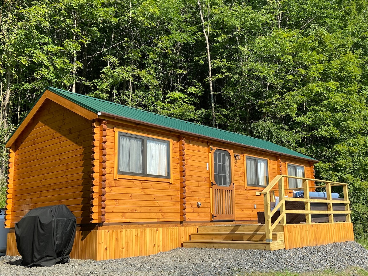 享受我們位於109英畝大自然中的偏遠、易於進出、完美的小木屋。 池塘、樹林和步道;配有高速網際網路和智慧電視! 可供6人入住,有兩間臥室和一張大床沙發床。 設備齊全的廚房,包括全尺寸冰箱、微波爐、Keurig咖啡機、鍋具和平底鍋、餐具和許多其他設施。 每個房間都能欣賞到美景! 探索我們的步道,當季可用時使用我們的冥想蒙古包,在大自然中找到寧靜! 位於滑雪走廊的中心!
