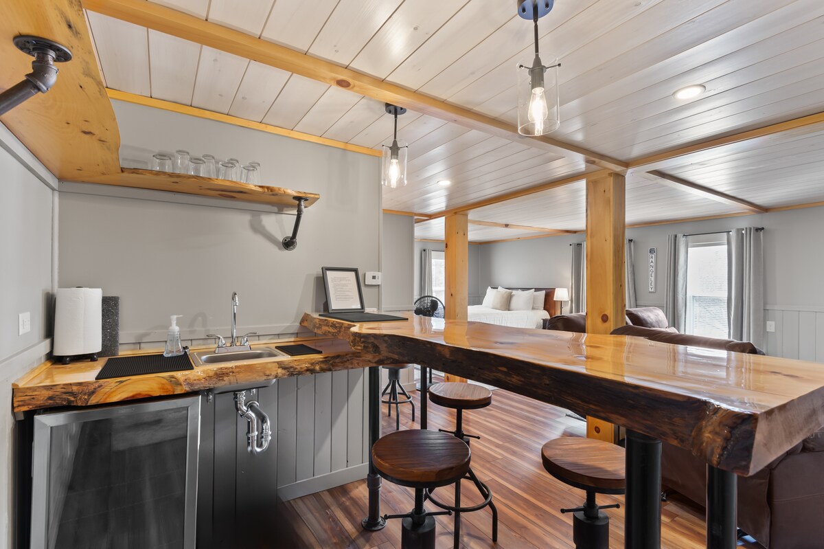 在古樸的新英格蘭大學城翻新了約1920年的馬車房。步行8分鐘即可抵達繁忙的市中心,有餐廳、酒吧、商店和雜貨店。優雅的現代風格。樓下開放式概念,配有沙發、日光浴床(在陽光下小睡!)和廚師設計的廚房。二樓有兩張雙人床和小陽台。毗鄰數英里的步行小徑和森林,充滿野生動物。開車不到5分鐘即可抵達沿著沙地河(Sandy River)的1.5英里跑步道,可享受清爽的游泳。