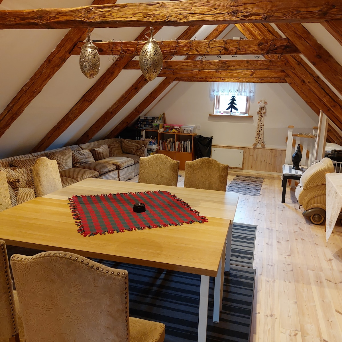 Välkommen till vårt mysiga gästhus i klassisk svensk landsbygdsidyll. Här bor du enkelt men hemtrevligt i ett gammalt brygghus med egen ingång, kök och sovrum. Huset är varsamt renoverat med lera, linolja och återbrukade material för en naturlig och hälsosam känsla. På gården finns får, katter och små odlingar, och bara en kort promenad bort väntar både skog och stilla sjö.