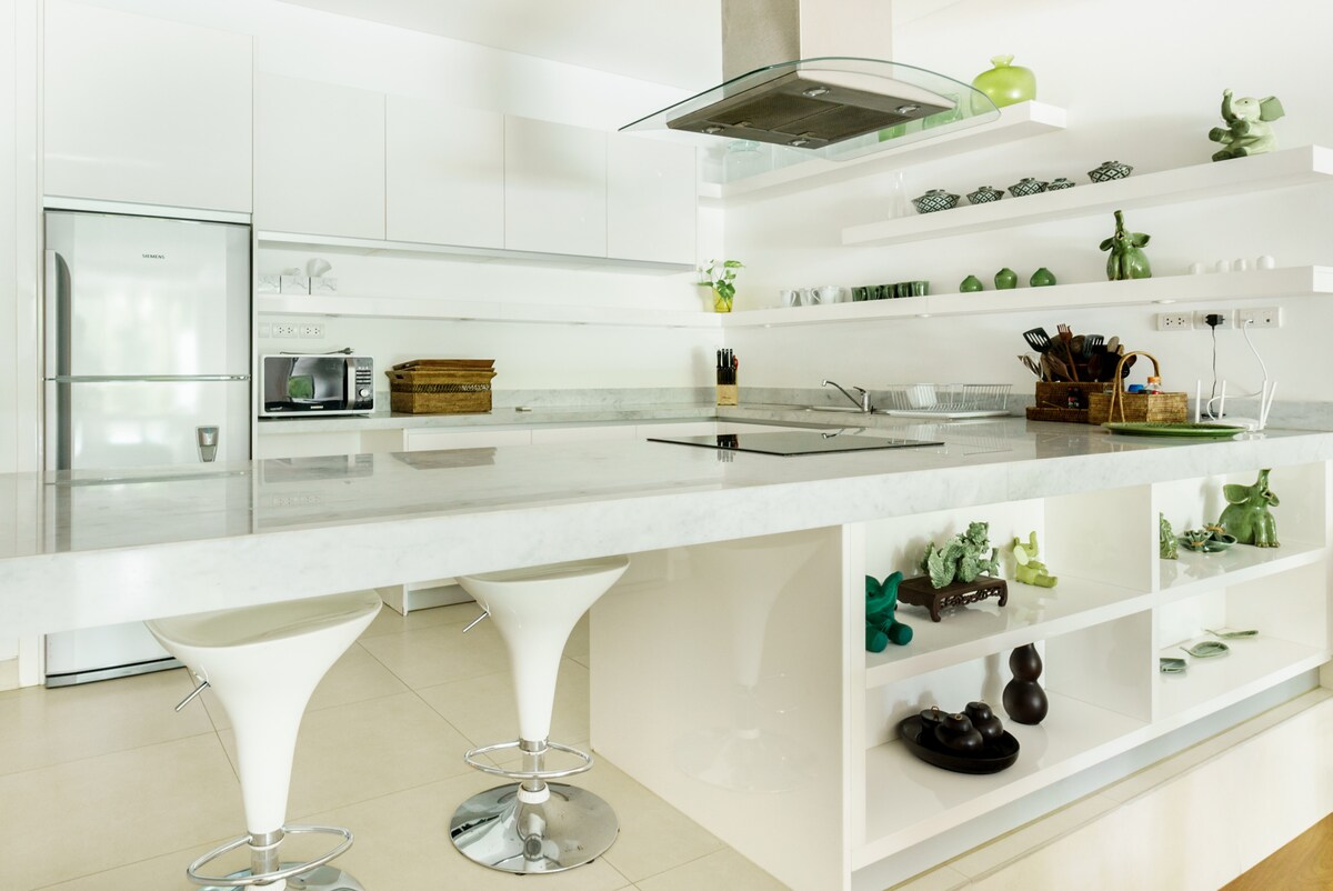 GORGEOUS POOL VILLA优雅的厨师和一个价钱包含的价钱5个超级主人的全部时间厨房和小屋包括在价格!这个VILLA靠近最受欢迎的SURIN海滩。更多更好的酒店:私人住宅,私人池,私人员工所有食物/饮料在成本免费自行车新55 INCHES T.V.与NETFLIX在生活室梦幻5星评论。一个机场免费转机,7座可以改装